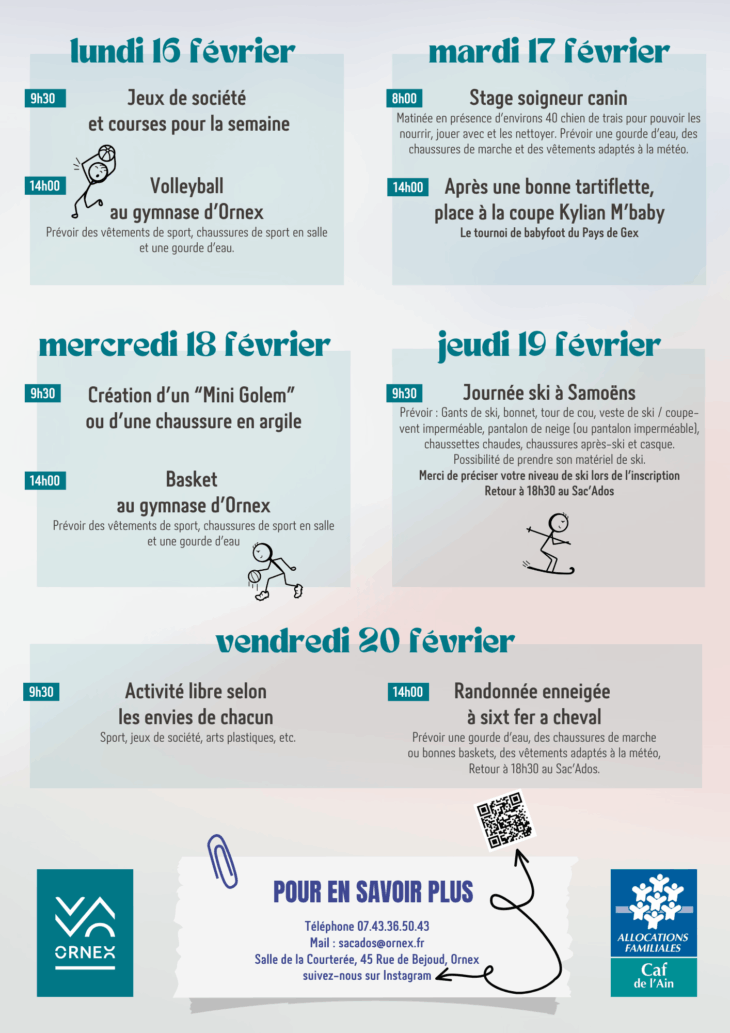 Dates des inscriptions au Sac’ados pour les vacances scolaires :