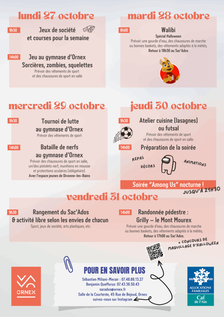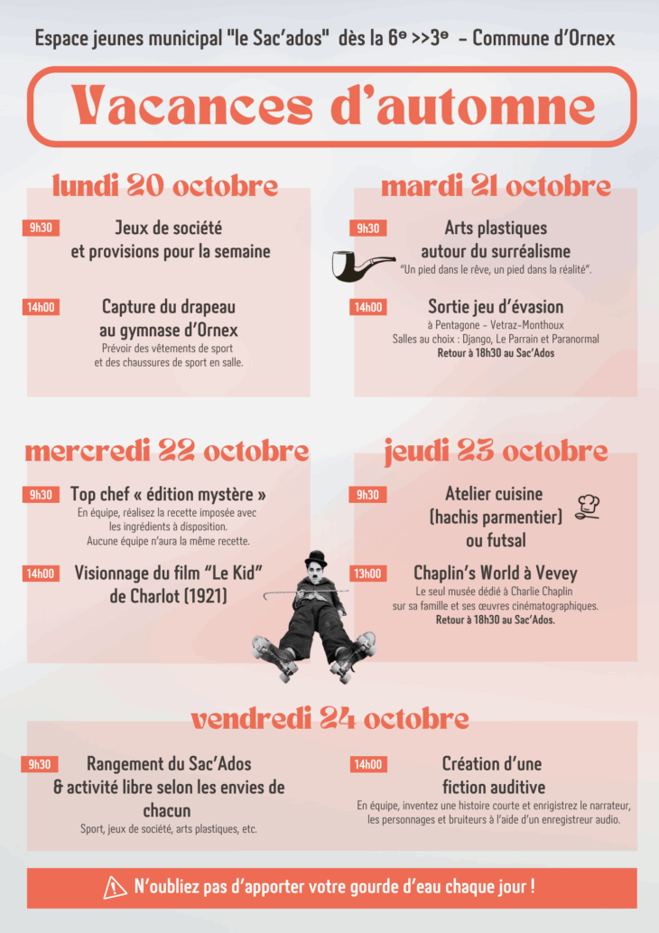 AUTOMNE | du lundi 22 sep au vendredi 10 oct 2025 | du lundi 29 sep au vendredi 10 oct 2025 | Du lundi 22 sep au vendredi 3 oct 2025 | du lundi 20 au vendredi 31 oct 2025 |